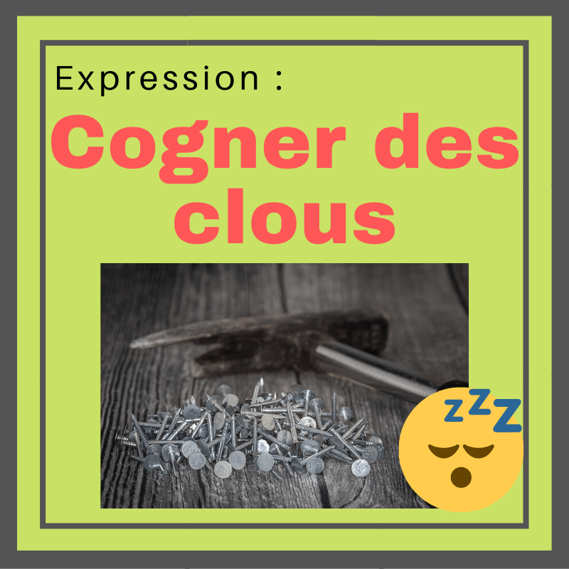 Cogner des clous signifie s’endormir/être si fatigué que sa tête commence à tomber, s’abandonnant au sommeil.
