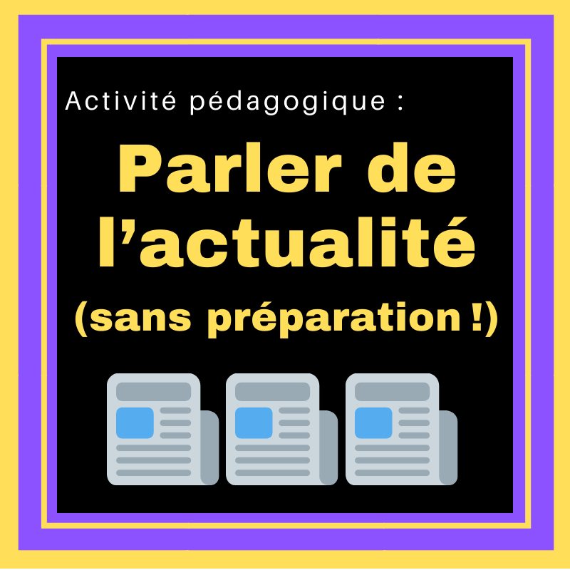 Voici une activité qui fait découvrir l’actualité et qui nécessite très peu de préparation. C’est une bonne activité à faire si vous avez besoin de remplacer un collègue et vous n’avez rien de planifié !