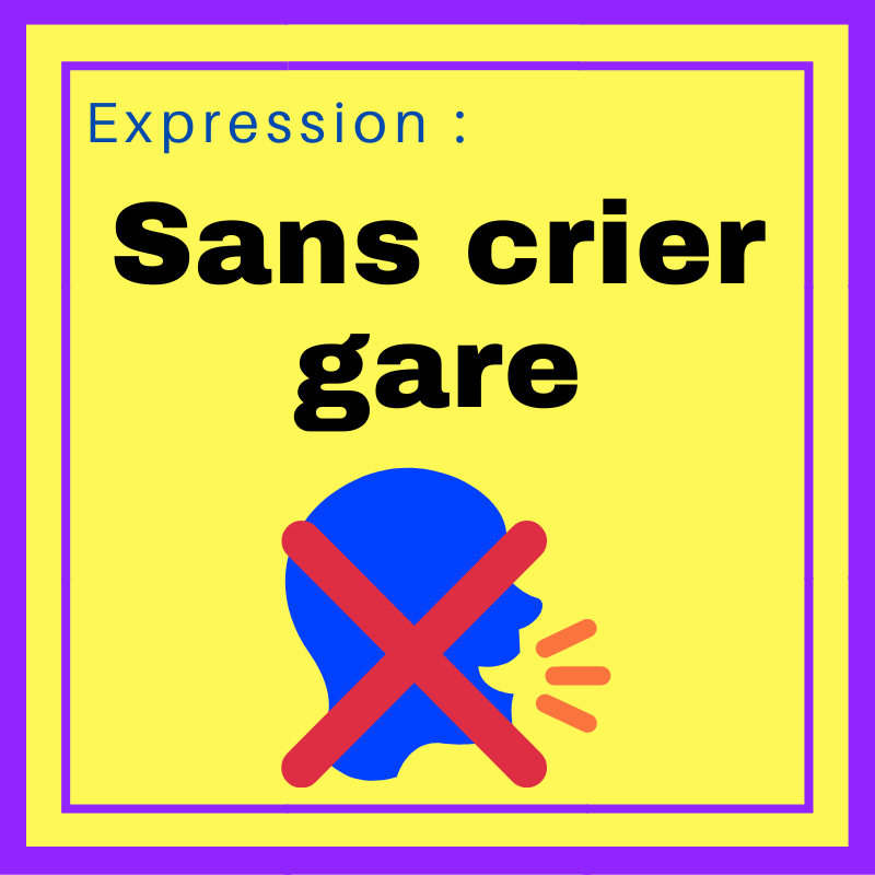 Sans crier gare signifie sans avertissement/sans prévenir, parfois avec l’effet de surprise ou d’une façon abrupte.